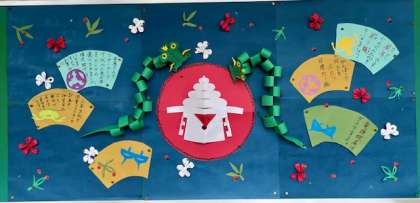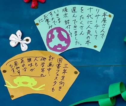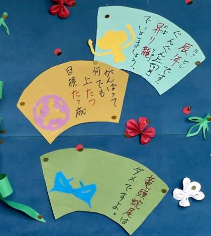 図書館前の掲示板が新年バージョンなっています。図書館司書の仲先生ありがとうございます。