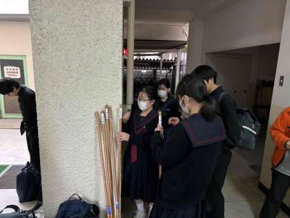 教室のほうきの交換準備を、寒い中、行いました!