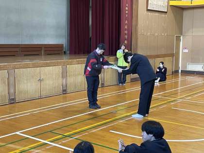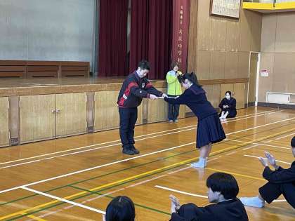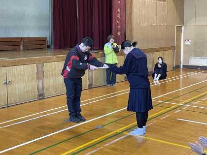 おはようございます。毎週木曜日、2年生が学年集会をおこなっています。集会の中で、先日の百人一首大会の表彰がありました。まずは、【松】【竹】【梅】の各部門からの個人表彰です。よく頑張りました。おめでとう!