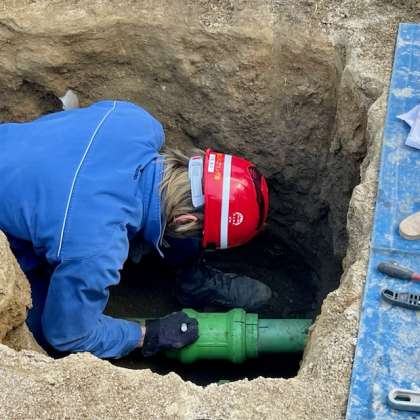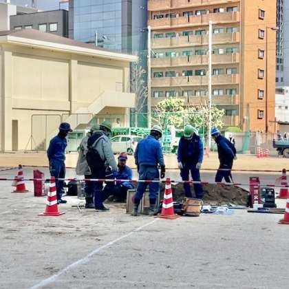 ガス管はグラウンドの真ん中を通っていました。今日はグラウンドの使用を中止して工事をお願いしています。このガス管は校舎に供給されていないので、教室の暖房には影響はないそうです。