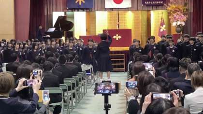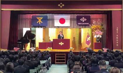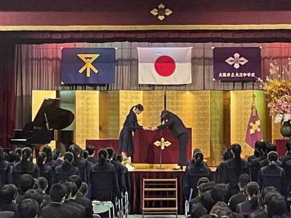 学校式辞、目録贈呈、卒業の歌「旅路」です。