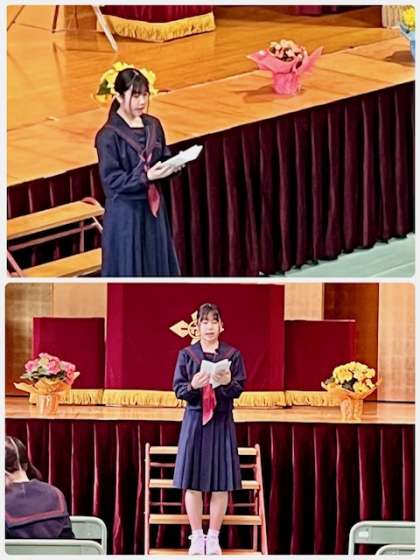 80期生の皆さんも、今日から大淀中学校の一員です。1日も早く中学校生活に慣れ、ともに学び、ともに育ち、ともに成長しましょう。