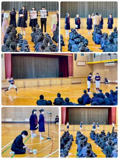 1年生は、放課後部活動紹介に参加しました。小学校時は授業の中でクラブ活動の時間がありましたが、中学校からは課外活動として新たに「部活動」があります。今日は2・3年生の先輩部員が部活動の魅力を紹介してくれました。