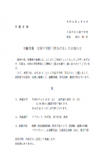 4月20日(土)のお知らせ