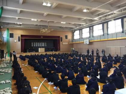 本日、平成27年度の後期生徒会役員選挙立会演説会・投票を行いました。本校生徒会役員は会長1名、副会長・書記・会計がそれぞれ男女1名ずつの定数で、会長に複数の立候補がありました。立候補者と応援演説者が全校生徒を前に立派に演説をしました。