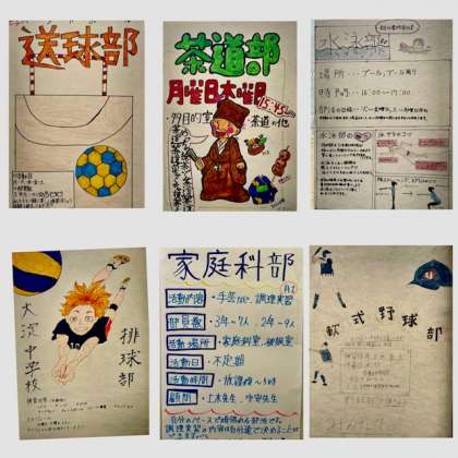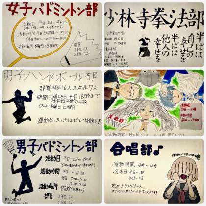 1年生教室前廊下に部活動勧誘ポスターが貼られています。