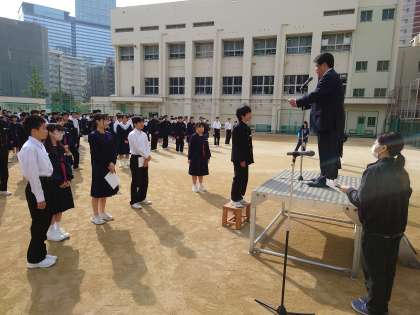 まず初めに、学級委員の認証式を行いました。