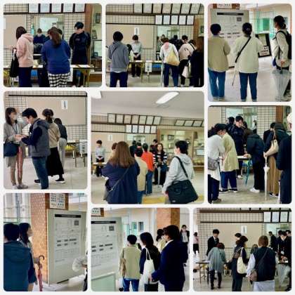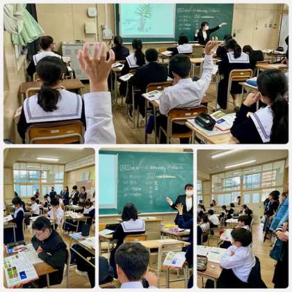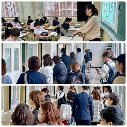 本日、6時間目に授業参観を行いました。写真は、受付の様子と1年生の様子です。