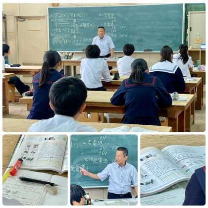 2年1組は、少人数授業でひとクラスを2グループに分かれて学習しています。技術科は電気を家庭科は食品について学習していました。