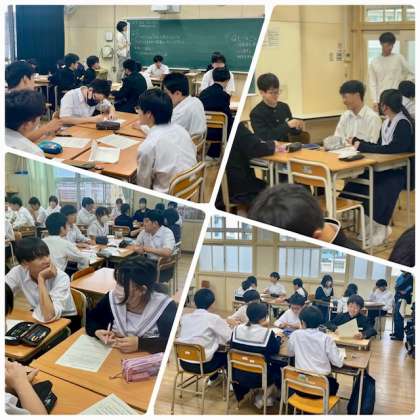 各クラスで、大淀中学校でいじめを撲滅するためのスローガンを考え、5月の生徒議会で討議して、大淀中学校のスローガンを決め、いじめはどんな理由があってもいけないことと決議する予定です。