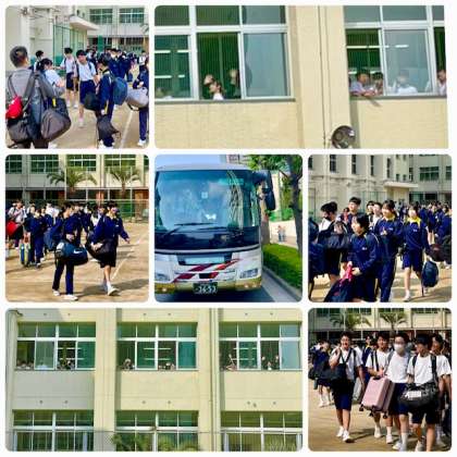 その後、2年生に見送られ、バスに移動して予定通り8時30分にバスは出発しました。本日もたくさんの見送りありがとうございました。