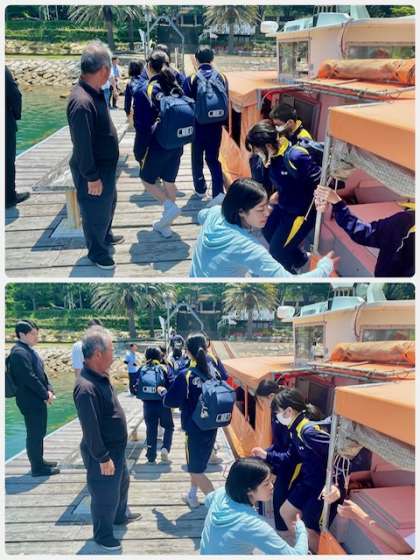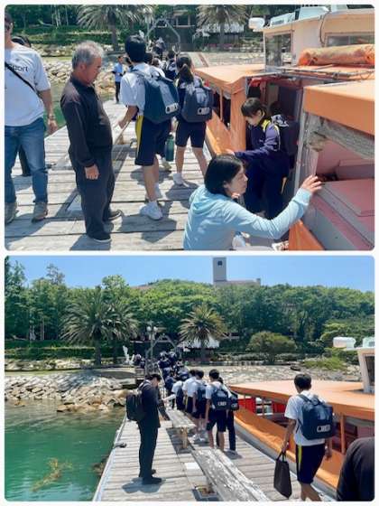 2組のみんなが前島に上陸です。これからお弁当をいただきます。