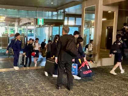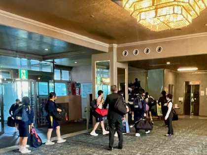 バスから降りて、最初に割り当てされた、それぞれの部屋に荷物を置きに行きます。