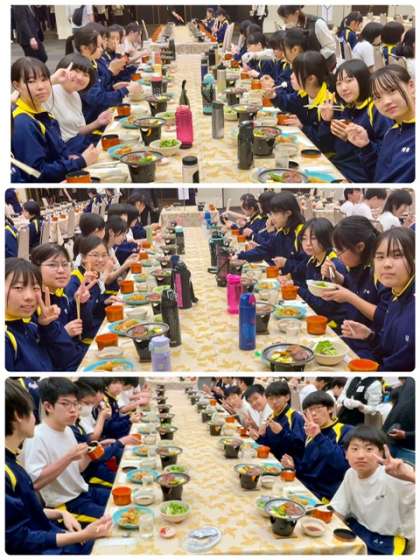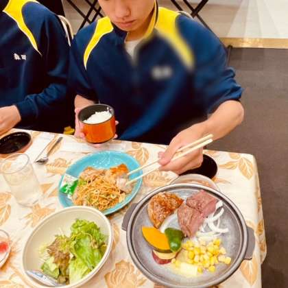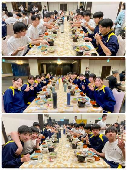 入館式に続いて、夕食の時間です。いかだ体験でお腹が空いているようです。しっかりといただきます。