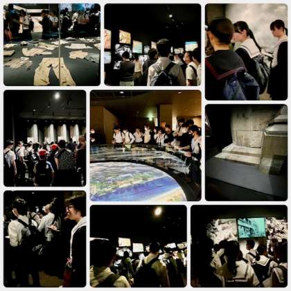 原爆資料館でフィールドワークです。ワークシートに沿って原爆の悲惨さ、戦争の残忍さを学びます。全国からたくさんの小中学生、世界中のあらゆる国々の人々が、この過ちを2度と繰り返さないために、私たちがどうすればいいのか考える資料館です。非常に多くの事実に基づく資料や映像を通して学びました。限られた時間では展示物を深く見ることが難しいです。あらためて、ご家族でも訪問して欲しいです。