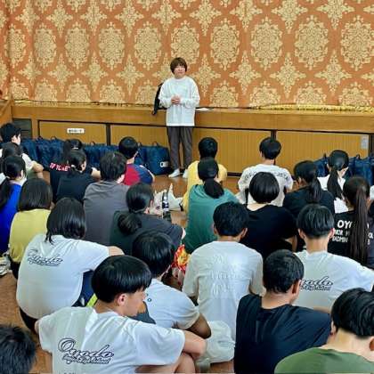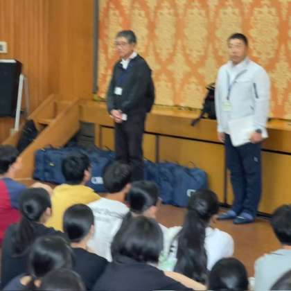 吉備中央町役場の方、観光協会の方から吉備中央町についてお話を聞かせていただきました。大阪市の約200分の1の人口で、涼しい気温を生かした農業、くだものづくりなど聞かせていただきました。
