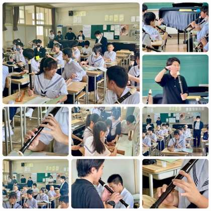 今日は、午前中から大阪市立総合教育センターから学力向上アドバイザーの太田忠男先生にお越しいただき、教員の授業力向上に資する研究授業週間を前に、朝から本校メンター(若手教員育成担当教員)が、示範授業を若手教員に向けて公開してくださっています。5時間目は本校メンターの音楽科沖正樹先生が公開授業を行いました。