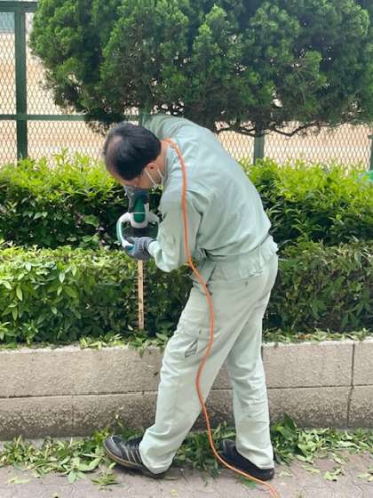 夏も近づいてきました。管理作業員の兼田さんが剪定をしてくださっています。