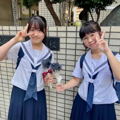 早い時間に職業体験学習を終えて中学校に戻ってきた生徒が「花束を作りました」と見せてくれました。