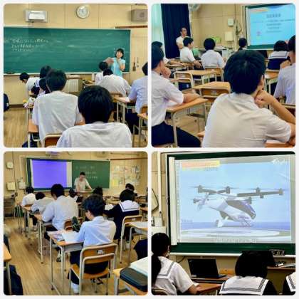 それぞれの学年のテーマについて考えをまとめていました。今日の各学年のお題は、1年生は「食品ロスを減らすためにはどんな方法があるだろうか。」2年生は「勉強して獲得できる能力にはどんなものがあるだろうか。」3年生は「空飛ぶクルマの開発から、どんな未来がイメージできるだろうか。」でした。