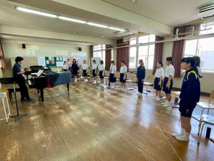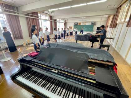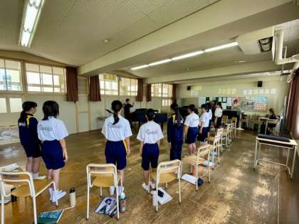 音楽室からは合唱部の清らかな歌声が響いてきました。合唱部は本番ラッシュです。明日は、美術部・少林寺拳法部と共に、中津支援学校で交流会に参加します。続いて金曜日は大阪市立総合文化祭合唱祭に出演します。来週31日は、ザ・シンフォニーホールで夢キタ音楽祭(社会を明るくする運動)に出演、8月にはNHKコンクール、合唱連盟コンクールと続きます。