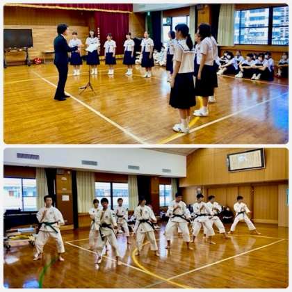中津支援学校に伺い、美術部、少林寺拳法部、合唱部の部員で交流会に参加しました。