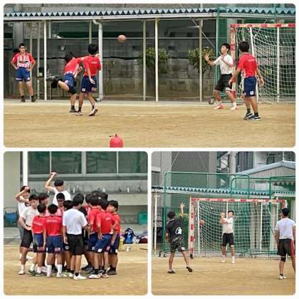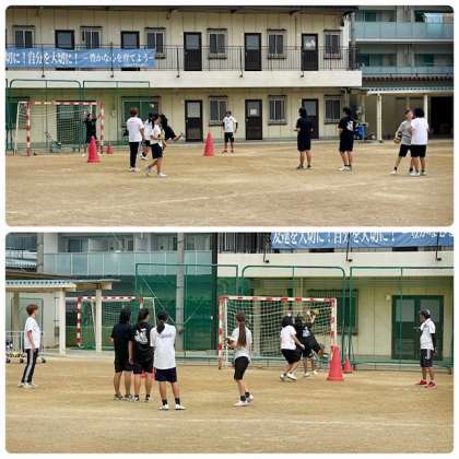 今日は曇り空で、暑さも少し和らいでいます。ハンドボール部男・女が練習しています。