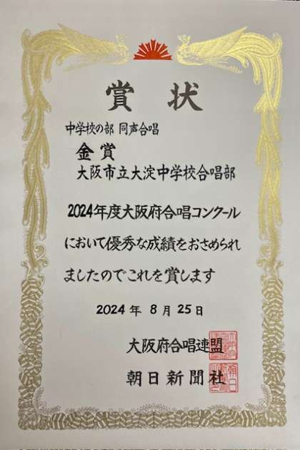 合わせて、8月25日(日)にコスモスシアターで開催された「2024大阪府合唱コンクール」で見事金賞をいただきました。9月23日(日)に開催される「関西合唱コンクール」への出場権もいただきました。