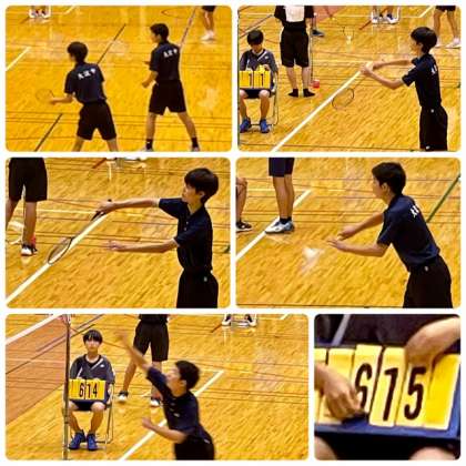 第1シングルスも快勝しました。最後の第2ダブルスも絶好調で勝つことができました。ベスト16になりました。2回戦に進みます。がんばれ大淀中学校バドミントン部!