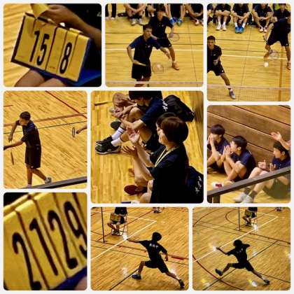 第1ダブルスは1回戦同様に好調です。最後は少し追いつかれてしまいましたが勝つことができました。続いてのシングルスも好調でしたが接戦となり、敗れてしまいました。最後の第2ダブルスは写真がありません。ゲームカウントは1対2で残念ながら敗れてしまいました。