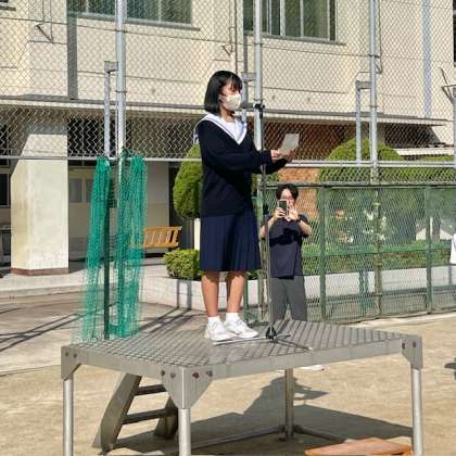 2人目は、体育委員長からです。明日から体育大会の種目「飛びまくれ!一発逆点!」の学級練習のために、昼休みに大縄飛び用のとび縄を貸し出しますとのことです。クラスの力を結束して頑張りましょう。