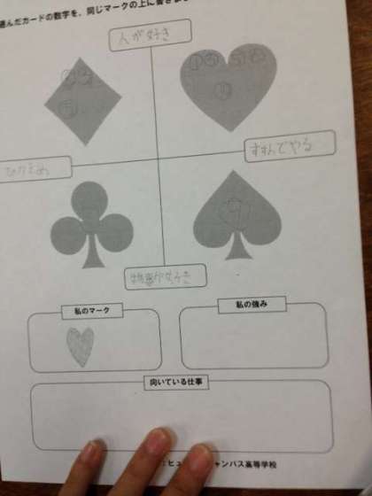 選んだSPトランプをマークごとに分けて、自分の強みを知ります。