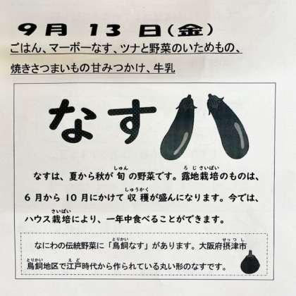 軽快な音楽放送の合間に、毎日の給食内容について話をしてくれます。今日のアナウンス担当は2年2組の川崎さんでした。とても上手に話をしてくれて、喫食している麻婆なすが、より一層美味しく感じました。ありがとうございます。