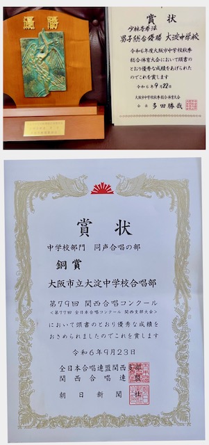 合唱部は9月23日(日)に枚方市立文化芸術センター関西医大大ホールで開催された、第79回関西合唱コンクールで銅賞を頂戴しました。この間、体育大会等で全校集会ができなかったため。あらためて披露・伝達しました。
