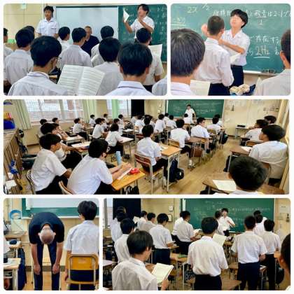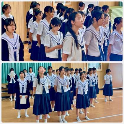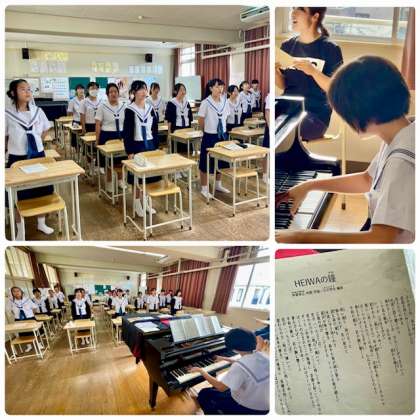 2年生は舞台発表で学年合唱を披露してくれます。混声3部合唱「HEIWAの鐘」作詞・作曲 仲里幸広さんです。