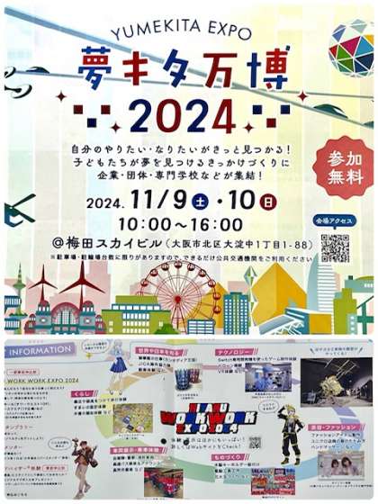 1年生は、11月9日(土)に夢キタ万博で開催される、KITAKU WORK WORK EXPO 2024(職業万博)で、職業講話を受けます。1年校舎では、当日お話を聞く企業の一覧表が張り出されていました。どんな企業がどんな話や体験を受けられるかを選択するためです。1年生は授業として参加しますが、昨年度体験した2年生や3年生もQRコードから申し込むことが可能です。