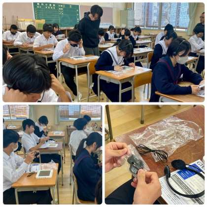 スピーキングのテストです。ヘッドセットのカバーを装着して準備をしています。最後までがんばりましょう。