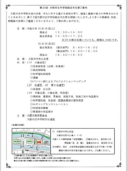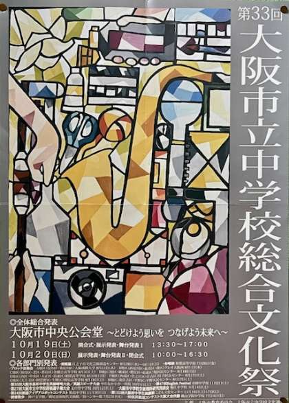 明日、10月19日(土)・20日(日)北区中之島の大阪市中央公会堂で「第33回大阪市立中学校総合文化祭」が開催されます。