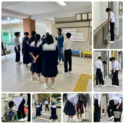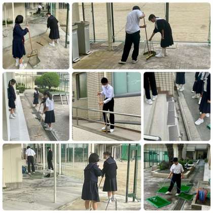毎週金曜日の朝は、早朝清掃です。各学年の当番の生徒が、学校内外の環境整備に頑張っています。ありがとうございます!