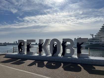 神戸の人気スポットのBEKOBEモニュメントの前にて各班、写真撮影中です。