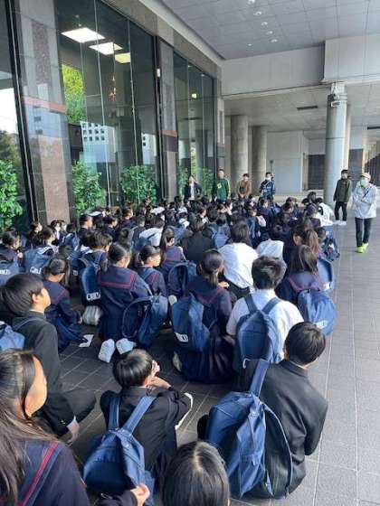 今日は、1年生が梅田スカイビル一帯を会場として開催されている「梅キタ万博」に来ています。