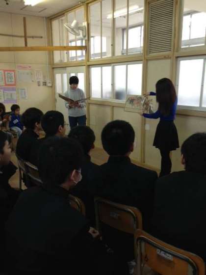 本日、2年生で、地域ボランティアの方々による「絵本の読み聞かせ」を行いました。