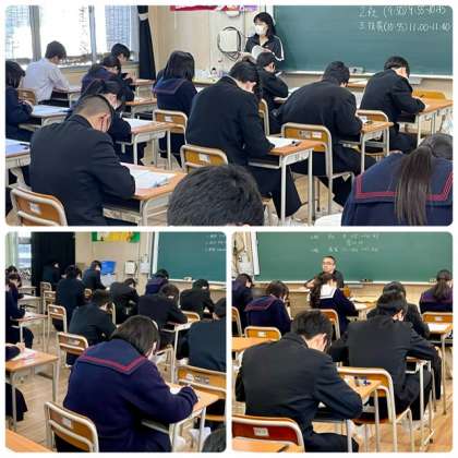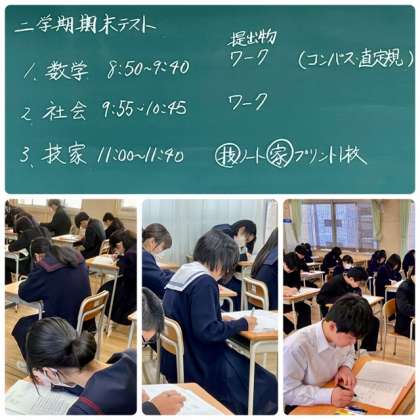 3年生の2学期末テストも始まりました。今日は、1時間目 数学、2時間目 社会、3時間目 技術・家庭のテストです。