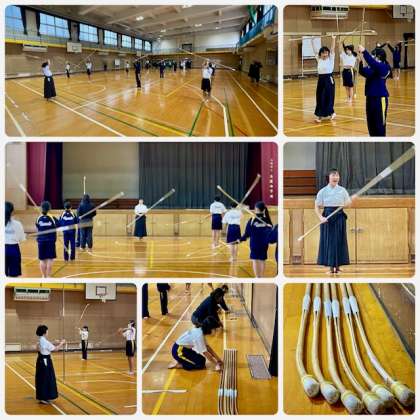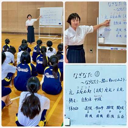 生徒の皆さんは初めて経験する人が大半ですが、「なぎなた」に親しんで楽しく学んでいました。