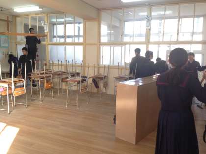 12月24日(木)、2学期の大清掃と床のワックスがけを行いました。壁の汚れ取り、窓ガラス磨き、扇風機や換気扇の羽掃除などを、「めっちゃきれいになった!」と楽しそうにかつ一生懸命にやっていました。