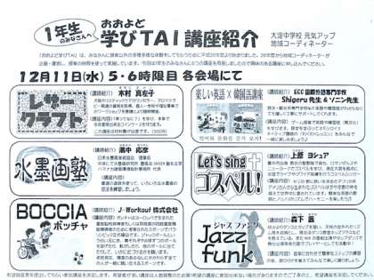 おはようございます。朝早くから元気アップ地域本部の方々が、12月11日に開催予定の「おおよど学びTAI」の受付にお越しくださっています。ありがとうございます。