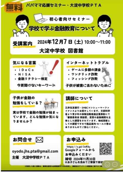 その他に、学校教育では保護者の皆様が学生時代に学ぶことが少なかった、金融教育も始まっています。この機会に保護者の皆様と学びたいと思います。
