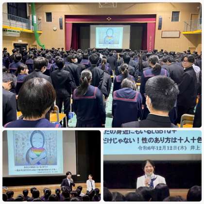 「自分のことを大切にして、他の人の大切さを認めることができる」ように、互いを認め合う態度の育成を目的に、演題「あなたの身近にもいるLGBTQ+ 〜LGBTQだけじゃない!性のあり方は十人十色〜」講演会を行いました。