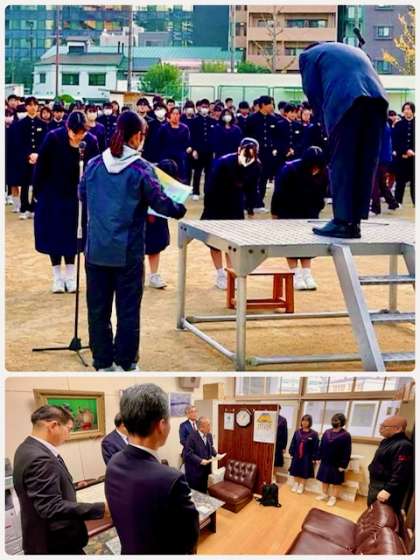 次に、テニス部大阪市テニス協会主催の第18回 中学生初心者大会男子の部で表彰状をいただきました。大淀中学校からは4チーム(ダブルス)が参加しました。4チームとも3試合連勝し、なんと決勝戦で大淀中学校同士の対戦となりました。