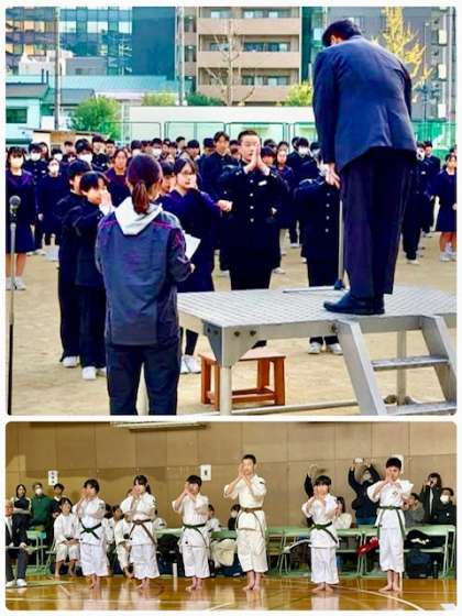 最後に、近畿中学校少林寺拳法大会に出場した皆さんの表彰でした。男子1年生 組演武の部 第2位 東 龍ノ輔さん、眞鍋篤志さん、女子2・3年 組演武の部5位 村松紗菜さん、池田瑛麻さん、男子団体演武の部第3位 呉 竜星さん、村松紗菜さん、田中大夢さん、東龍ノ輔さん、眞鍋篤志さん、池田瑛麻さん(男女混合の場合は男子の部で出場可)が表彰状をいただきました。